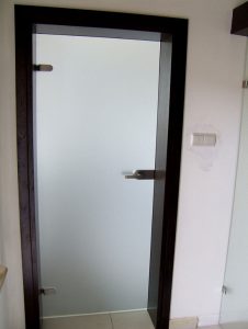 drzwi szklane montowane do ościeżnicy drewnianej, szkło matowe