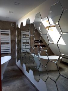 lustro wykonane na wymiar, klejone na ścianę, hexagon