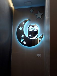 lustro wykonane na wymiar, podświetlane LED, sowa